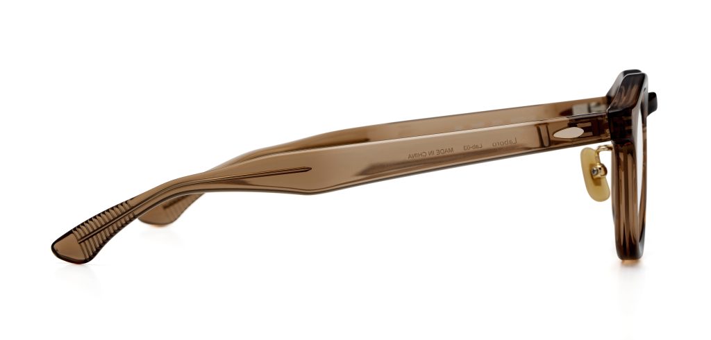 強度数のレンズは厚みが出やすく、横から見た時にレンズがはみ出して見えることがあります。そのため、リム側面は厚みを自然にカバーできる太さにしつつ、正面からはスッキリ見えるよう細めにデザインしています。(Lab-04)